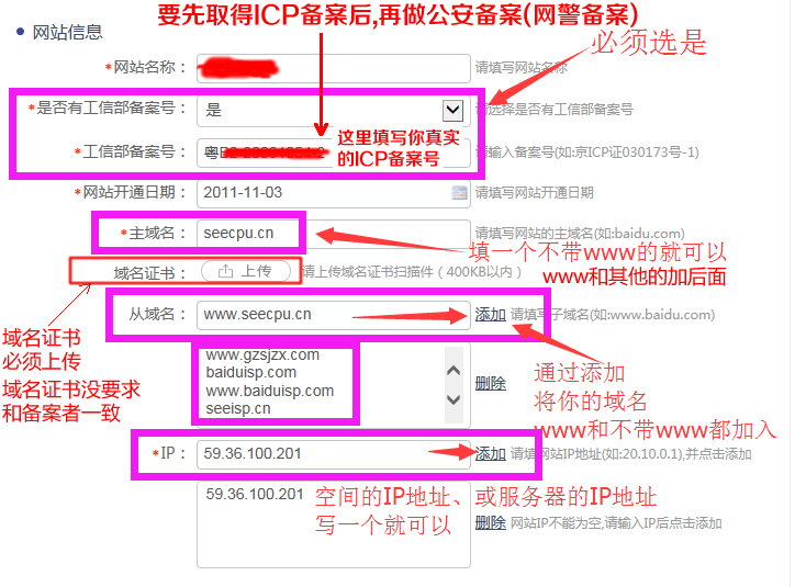 公安备案时填写注意事项(使用我们空间或租用、托管服务器的用户备案时接入服务商才填写我们公司名称):
