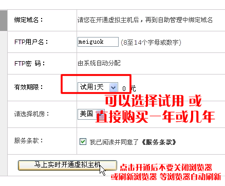 5、在线直接开通虚拟主机(网站空间、数据库、企业邮局等)方法:
