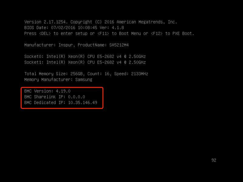 说明:上面的Get BMC Sharelink Parameters为共享连接,就是IPMI配置到上网网卡上,不是配置到专用BMC网卡上